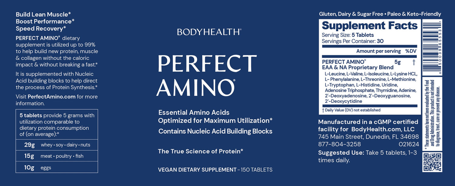 We know that PERFECT AMINO® provides the precise essential amino acids needed by the human body in a form and ratio that is utilized up to 99% to build new protein, muscle and collagen.